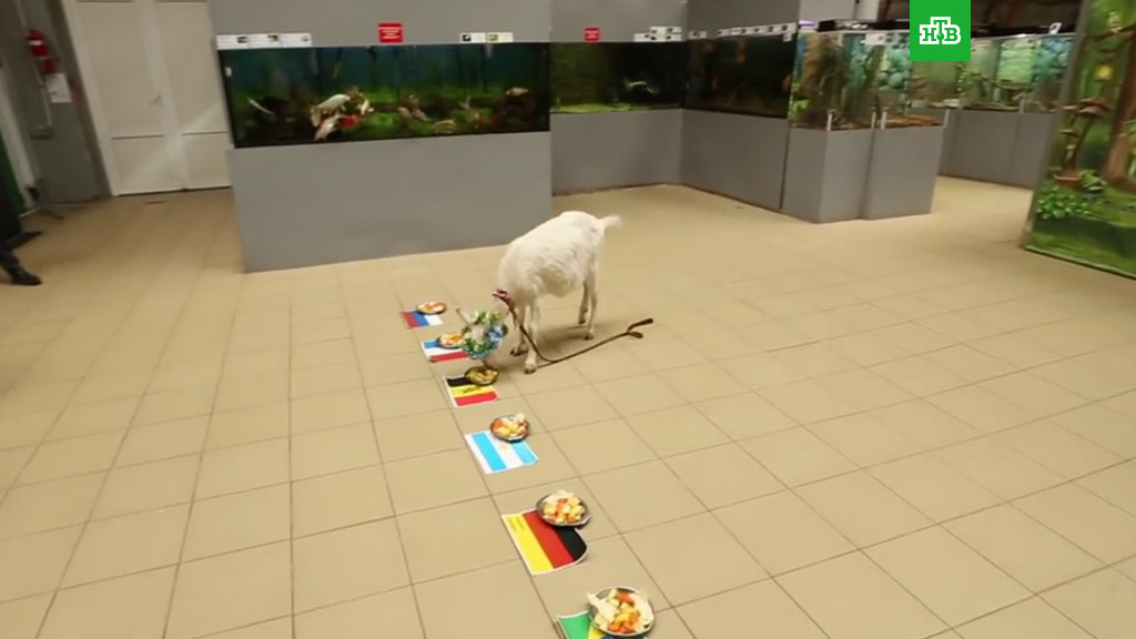 Забияке предложили выбрать победителя среди команд России, Франции, Аргентины, Бельгии, Германии и Бразилии. Отмечается, что коза, не сомневаясь, выбрала миску, на которой был изображен флаг Бельгии. После этого Забияка пожевала корм из соседней чашки с флагом Франции, передает «Интерфакс».