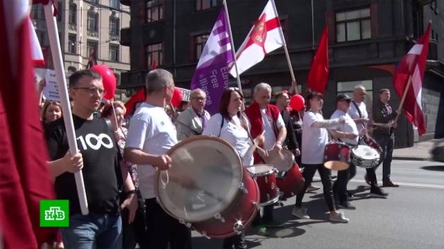 В Риге на первомайскую демонстрацию пришли защитники русского языка. Десять тысяч человек протестовали против перевода обучения в школах для русскоговорящих на латышский язык.