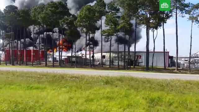 Крупный пожар произошел на химическом заводе в штате Луизиана.