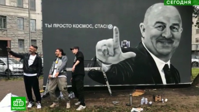 Известные в городе на Неве граффитисты разместили масштабный портрет главного тренера национальной команды на трансформаторной будке в Петроградском районе. Улыбающегося Станислава Черчесова сопровождает комментарий «Ты просто космос, Стас».