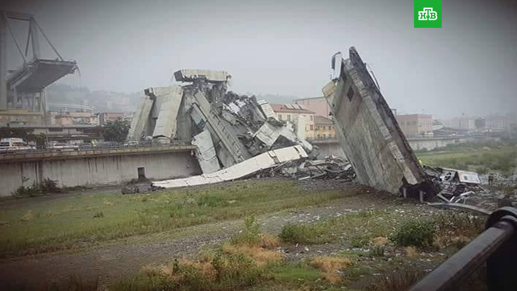 Причиной обрушения автомобильного моста близ итальянской Генуи мог стать удар молнии.