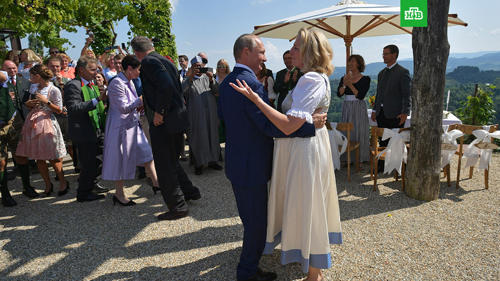 Напомним, что 18 августа российский лидер Владимир Путин побывал на свадьбе главы австрийского МИДа Карин Кнайсль с финансистом Вольфгангом Майлингером, подарил новобрачным картину с сельским пейзажем, старинную масловыжималку и тульский самовар. Российский лидер произнес тост на немецком языке, много шутил, гости отдавали должное чувству юмора президента, прерывая его слова аплодисментами. По словам