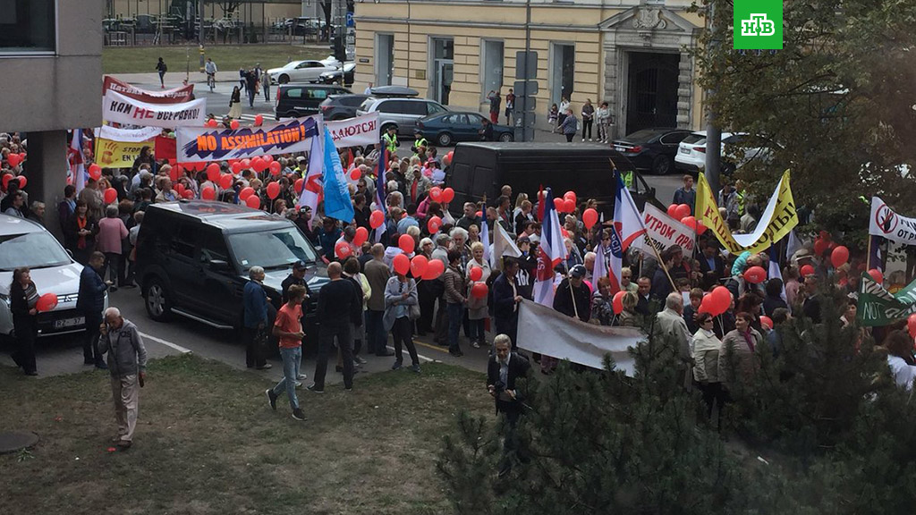 Несколько тысяч человек прошли маршем по центру Риги в знак протеста против перевода русских школ на латышский язык.