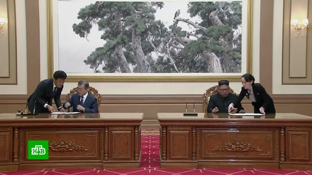По итогам двухдневного саммита, который состоялся в столице КНДР, председатель Госсовета КНДР Ким Чен Ын и президент Республики Корея Мун Чжэ Ин подписали совместный документ. Церемония подписания исторического документа транслировалась в прямом эфире.