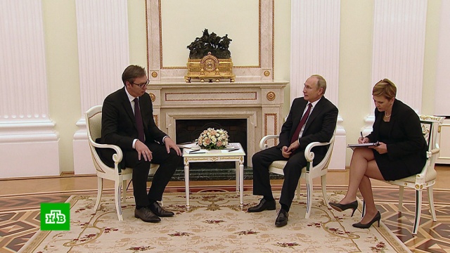 Развитие отношений России и Сербии обсудили главы двух стран. Владимир Путин встретился сегодня в Кремле с президентом республики Александром Вучичем, который прибыл в нашу страну с рабочим визитом. Стороны уделили внимание политике и экономике, а также коснулись вопроса сохранения мира на Балканах.