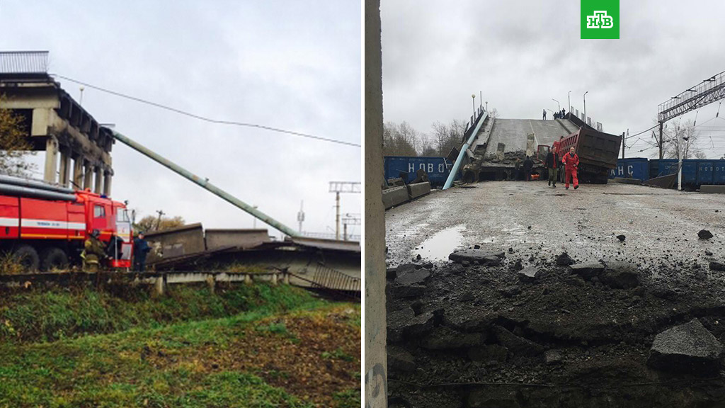 Два пролета виадука рухнули прямо на проходящий товарный поезд. Произошедшее зафиксировала камера наблюдения. В тот момент по мосту проезжал грузовой автомобиль, водителя с серьезными травмами доставили в больницу.