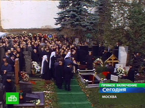 В эти минуты траурная процессия медленно приближается к месту предстоящего погребения Виктора Черномырдина. Там будет совершена заупокойная служба, а перед этим произошло отпевание здесь же, в храме Новодевичьего монастыря в Успенском соборе. Проводил отпевание митрополит Крутицкий и Коломенский Ювеналий, а заключительную часть — Патриарх Московский и всея Руси Кирилл.