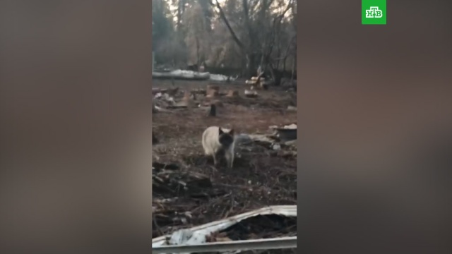 В американском городе Парадайс (штат Калифорния) кошка дождалась своих хозяев, которые спустя месяц после мощного лесного пожара вернулись к месту, где раньше был дом родителей.