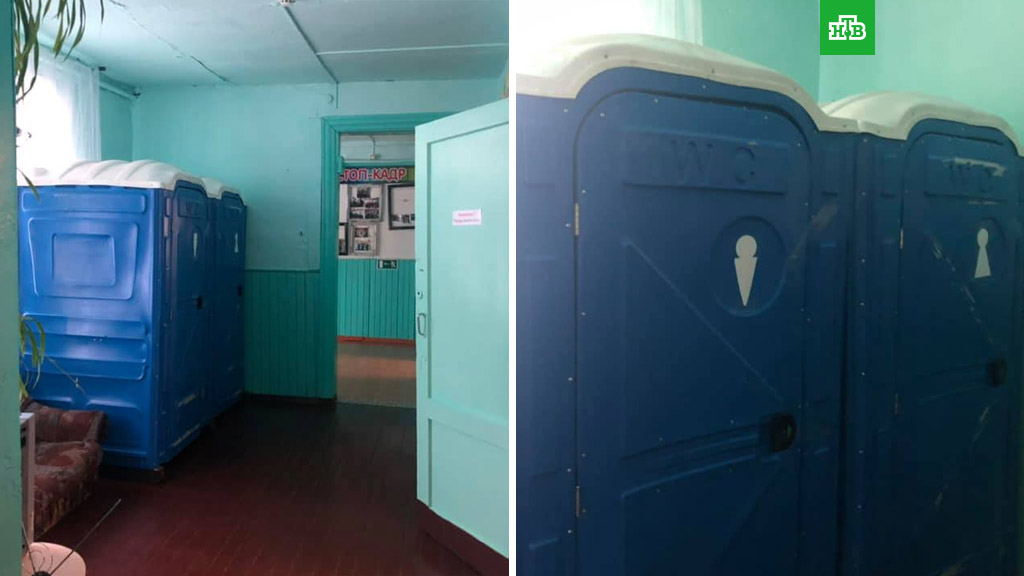 В школе поселка Вознесенска Красноярского края установили биотуалеты, но школьникам запретили ими пользоваться. Кабинки стоят в коридоре учебного заведения, двери на них заклеены скотчем.