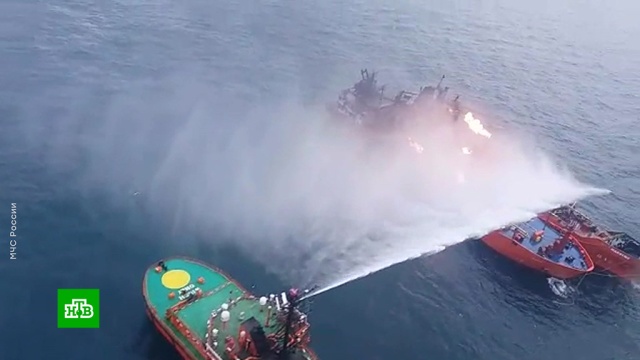 Напомним, танкеры под флагом Танзании перевозили сжиженный газ. Пожар вспыхнул во время передачи топлива с одного судна на другое. Пытаясь спастись, моряки прыгали за борт. Огонь на обоих танкерах потушен. В