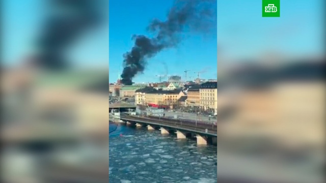 Полиция перекрыла движение на дорогах, ведущих в центр Стокгольма, из-за взорвавшегося автобуса.