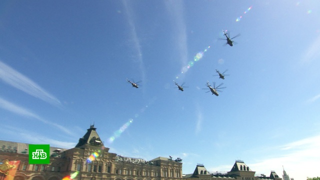 Авиационная часть — это традиционный элемент парада Победы. В прошлом году над Красной площадью пролетели 77 боевых машин.