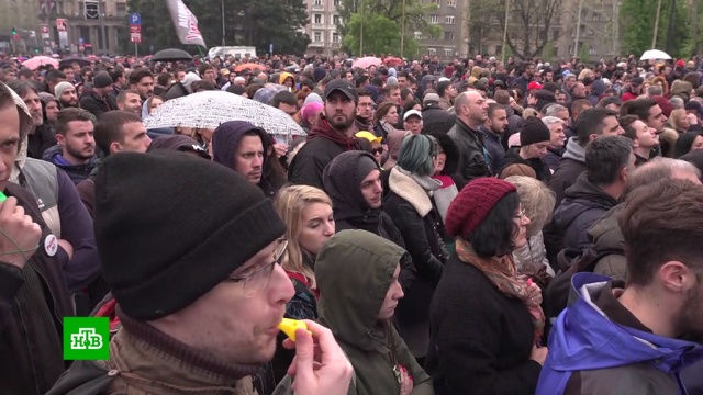 Главным атрибутом антиправительственных протестов в Сербии стал свисток, и лидеры оппозиции даже соперничают, чье выступление вызовет больший шумовой эффект.