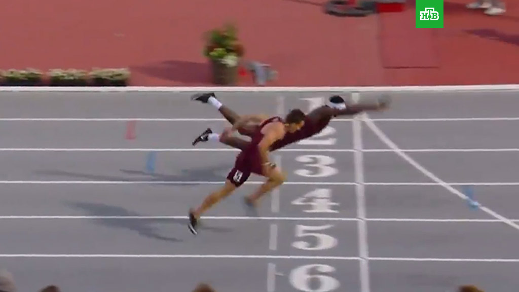 Американский бегун Инфинит Таккер применил нестандартный прием, чтобы выиграть забег на 400 метров с барьерами.