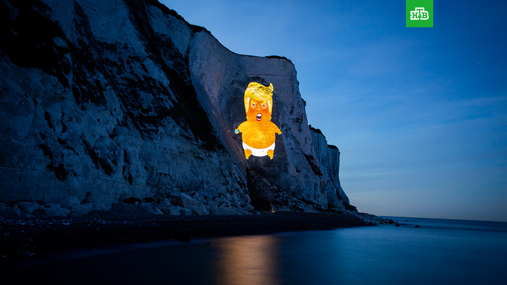 В преддверии визита американского лидера в Великобританию на скалах в Дувре появилась проекция «малыша Трампа».