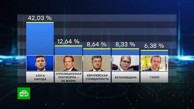 После обработки 30% протоколов партия украинского президента Владимира Зеленского «Слуга народа» набирает более 42%. На втором месте укрепилась «Оппозиционная платформа — За жизнь». За партию Виктора Медведчука, Юрия Бойко и Вадима Рабиновича проголосовали 12,69% избирателей. Далее с заметным отрывом идут «Европейская солидарность»