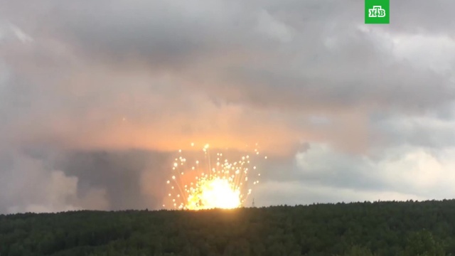 В Сети появилось новое видео ЧП на территории воинской части в Красноярском крае. Там продолжают греметь взрывы. Один из самых мощных попал в объектив камеры очевидца.
