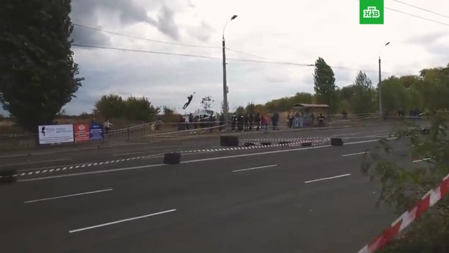 Уличные гонки проводились в украинском городе Черкассы. От движущихся на огромной скорости автомобилей зрителей отделяли только натянутые вдоль трассы ленточки.