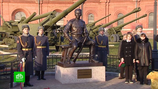 В честь 100-летия со дня рождения площадку перед главным входом в Военно-исторический музей артиллерии, инженерных войск и войск связи украсила бронзовая фигура создателя легендарного автомата Калашникова.