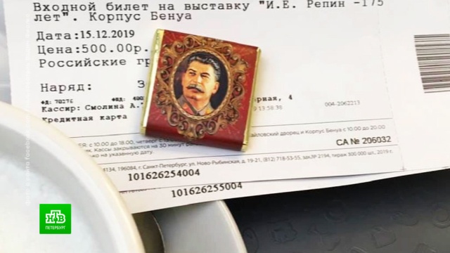 Посетитель Русского музея выложил в соцсети фото шоколадки, которую ему в качестве бесплатного бонуса дали к кофе. На обертке был изображен Иосиф Сталин.