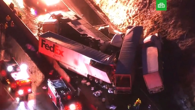 Массовая авария с участием трех грузовых фур, автобуса и легковых машин произошла на трассе в американском штате Пенсильвания: примерно в 50 км к востоку от Питтсбурга.