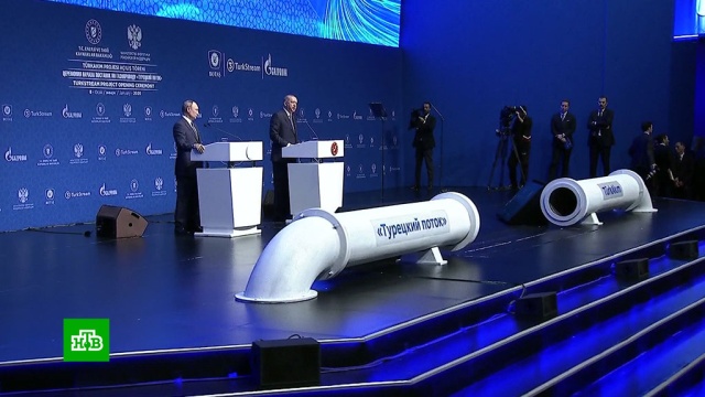 На самом деле «Турецкий поток» заработал еще до торжественной церемонии в Стамбуле. Газ по новому трубопроводу с первых дней января начали получать Болгария, Северная Македония, Греция. Но официальный запуск нового газопровода состоялся именно сегодня. Около 16:15 по московскому времени Путин и Эрдоган открыли символический вентиль.