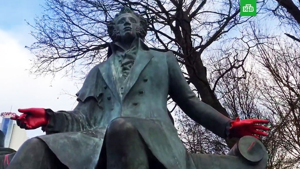 Памятник Александру Пушкину в центре Минска раскрасили красной краской.