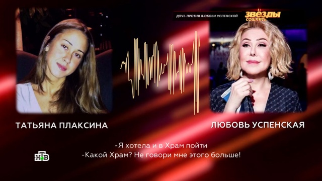 Татьяна Плаксина рассказала в студии программы «Звезды сошлись», как она испугалась, когда Любовь Успенская начала ругаться матом, закрыла ее в комнате и начала душить. Она говорила дочери страшные слова: «я тебя ненавижу», «я тебя прикончу», «я тебя придушу». По словам Плаксиной, ее мать не в первый раз поднимает на нее руку.