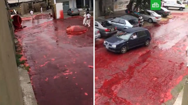 Одна из улиц в пригороде столицы Аргентины превратилась в кровавую реку из-за аварии на местной скотобойне.