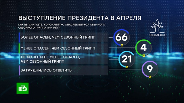 О необходимости соблюдать режим самоизоляции на этой неделе говорил президент России. В своем обращении к гражданам, перед совещанием с главами регионов, Владимир Путин призвал россиян потерпеть. Сегодня ВЦИОМ рассказал о реакции на это выступление и об отношении людей к ситуации с коронавирусом.