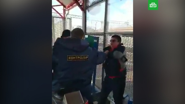 Очевидцы сняли на видео контролера, избивавшего пассажира на станции пригородной электрички в Раменском районе Подмосковья.