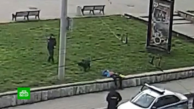 На записи, которая стала поводом для дискуссий в Интернете, хорошо видно, что предшествовало инциденту и чем в итоге он закончился. Судя по всему, полицейские долго размышляли, как подобраться к человеку, лежавшему на газоне в центре города. Покой своего нетрезвого хозяина охранял черный пес. Сначала он не проявлял агрессии, но в