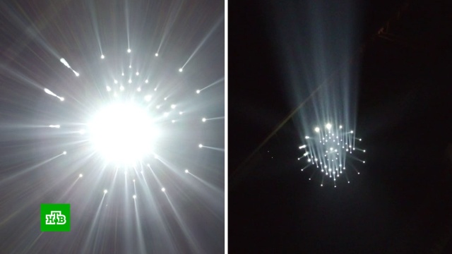 В рамках проекта «Лучи добра» небо над Сочи осветили тысячи прожекторов.