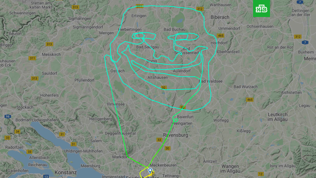 Увидеть изображение можно на сайте по отслеживанию воздушных судов Flightradar24. Чтобы «нарисовать» на радаре такую картинку, летчику понадобилось почти два с половиной часа.