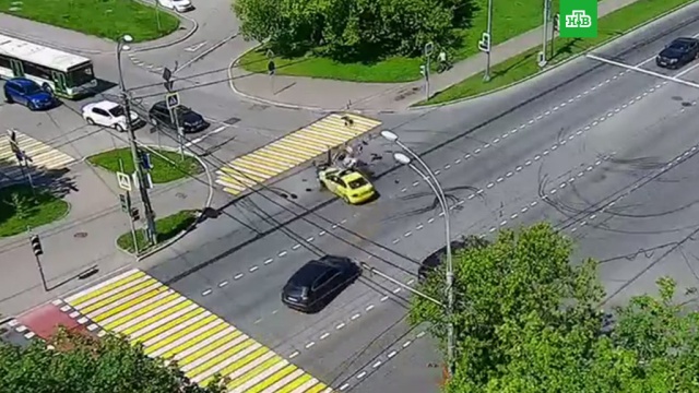 Камера видеонаблюдения запечатлела момент аварии на пересечении Мосфильмовской улицы и Университетского проспекта в Москве. Водитель автомобиля такси приступил к повороту, когда в него на бешеной скорости влетел мотоциклист. Удар был такой силы, что автомобиль такси развернуло.