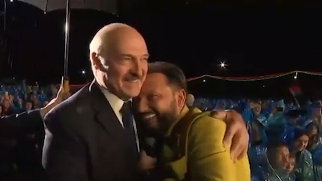 Певец Стас Михайлов во время выступления на фестивале в Александрии вышел под дождь, чтобы поприветствовать белорусского лидера.