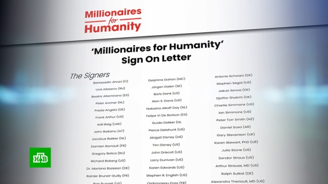Открытое письмо подписали сразу 83 миллионера со всего света. Среди них — актер и российский гражданин Стивен Сигал, внучка Уолта Диснея, сооснователь американской компании по производству мороженого Ben & Jerry’s, второй богатейший человек Новой Зеландии и многие другие.