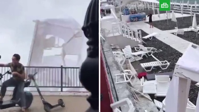 В Сочи смерч вышел на берег в Имеретинской бухте и снес пляжное оборудование. Видео инцидента опубликовали в Сети.