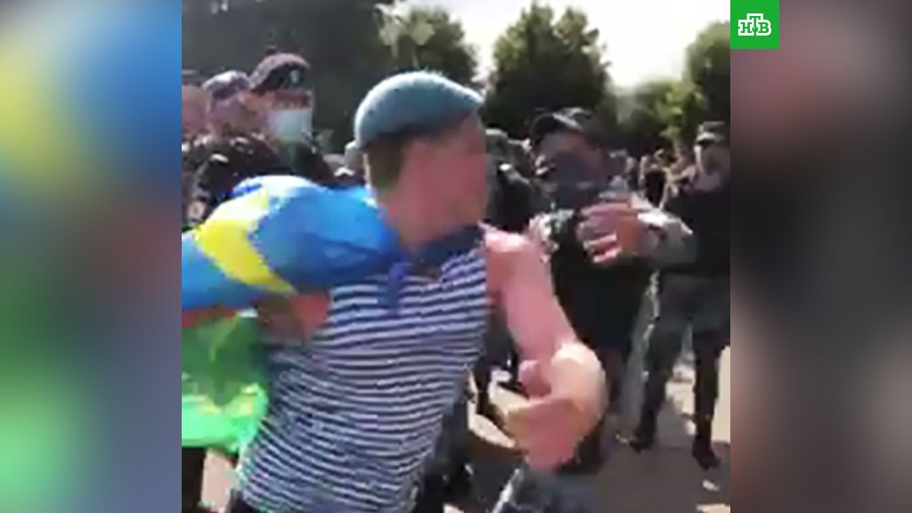 Речь идет о стычке, которая произошла накануне. На опубликованных в Сети видео, видно, что к росгвардейцам сзади подошел мужчина в тельняшке и толкнул одного из бойцов. После этого правоохранители попытались повалить десантника на землю, и завязалась драка.