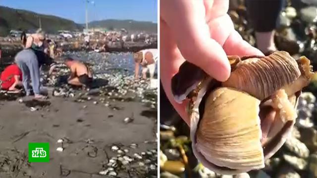 Но некоторым жителям Владивостока последствия непогоды подарили положительные эмоции. Штормовые волны выбросили на пригородный пляж тысячи моллюсков, в том числе съедобных мидий и гребешков. В поисках бесплатного обеда берег оккупировали гурманы.
