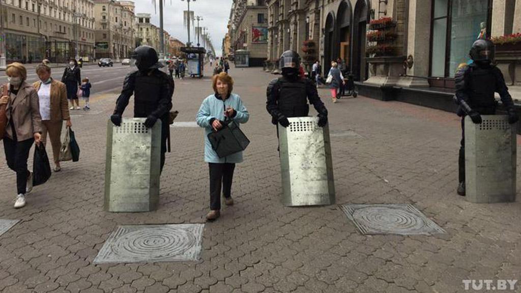 На прилегающих к проспекту Независимости улицах припаркованы автозаки и автомобили скорой помощи. Замечена также спецтехника, в том числе водометы. Сама площадь обнесена металлическими ограждениями, вдоль которых выставлено милицейское оцепление. Подземные переходы под площадью закрыты на вход. Обстановка пока остается спокойной, протестующих вблизи также не видно.