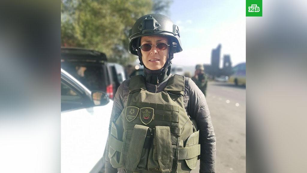 Сегодня Юлия Чичерина разместила в своем Instagram фотографию, на которой она стоит в каске и бронежилете с отличительными знаками Вооруженных сил Армении.