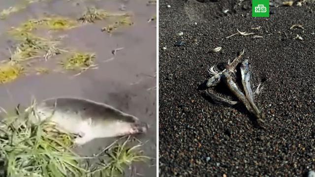 На Халактырский пляж выбрасывает мертвых морских обитателей. На берегу можно видеть большое количество мертвой рыбы, а также морских ежей, звезды и моллюсков.