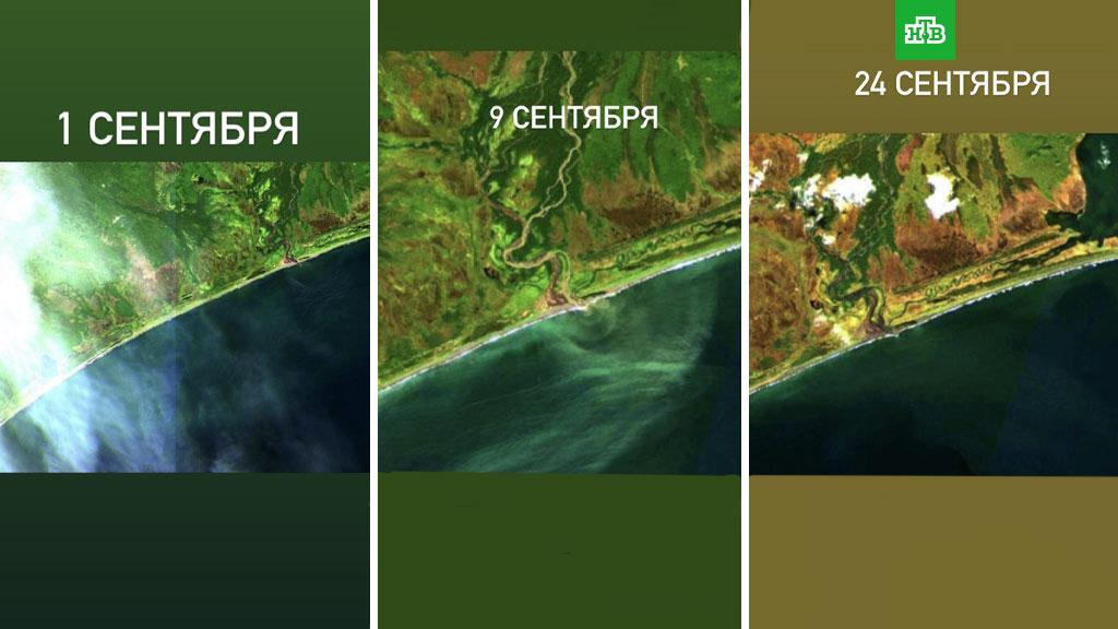 В Сети опубликовали видеоролик, снятый с высоты, на котором видно нефтяное пятно в Тихом океане возле Камчатки. От выброса нефтепродуктов погибли тысячи морских обитателей.