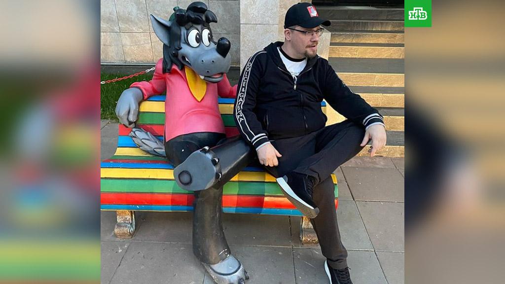 На снимке Харламов позирует рядом с Волком из мультфильма «Ну, погоди!», которого он будет озвучивать в новых сериях. На фотографии видно, как сильно похудел шоумен.