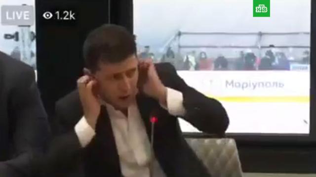 Президент Украины Владимир Зеленский во время хоккейного матча в Мариуполе испугался резкого шума. Видео с мероприятия попало в соцсети.