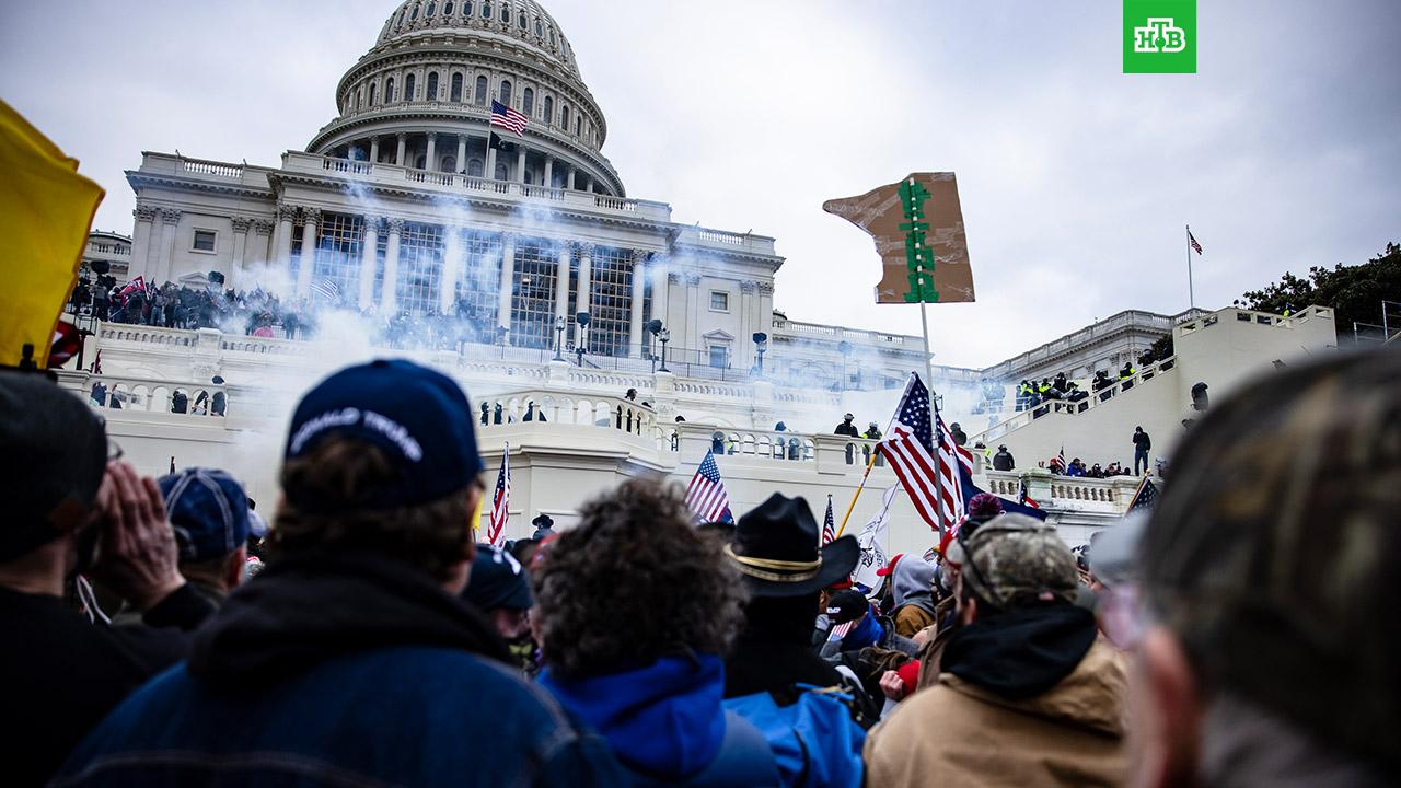 Накануне сторонники Дональда Трампа устроили митинг в Вашингтоне, закончившийся погромами и штурмом здания Капитолия. Во время беспорядков погибли четыре человека, в том числе женщина — ветеран ВВС, которая получила смертельное огнестрельное ранение, пытаясь ворваться в Капитолий. Власти объявили комендантский час.