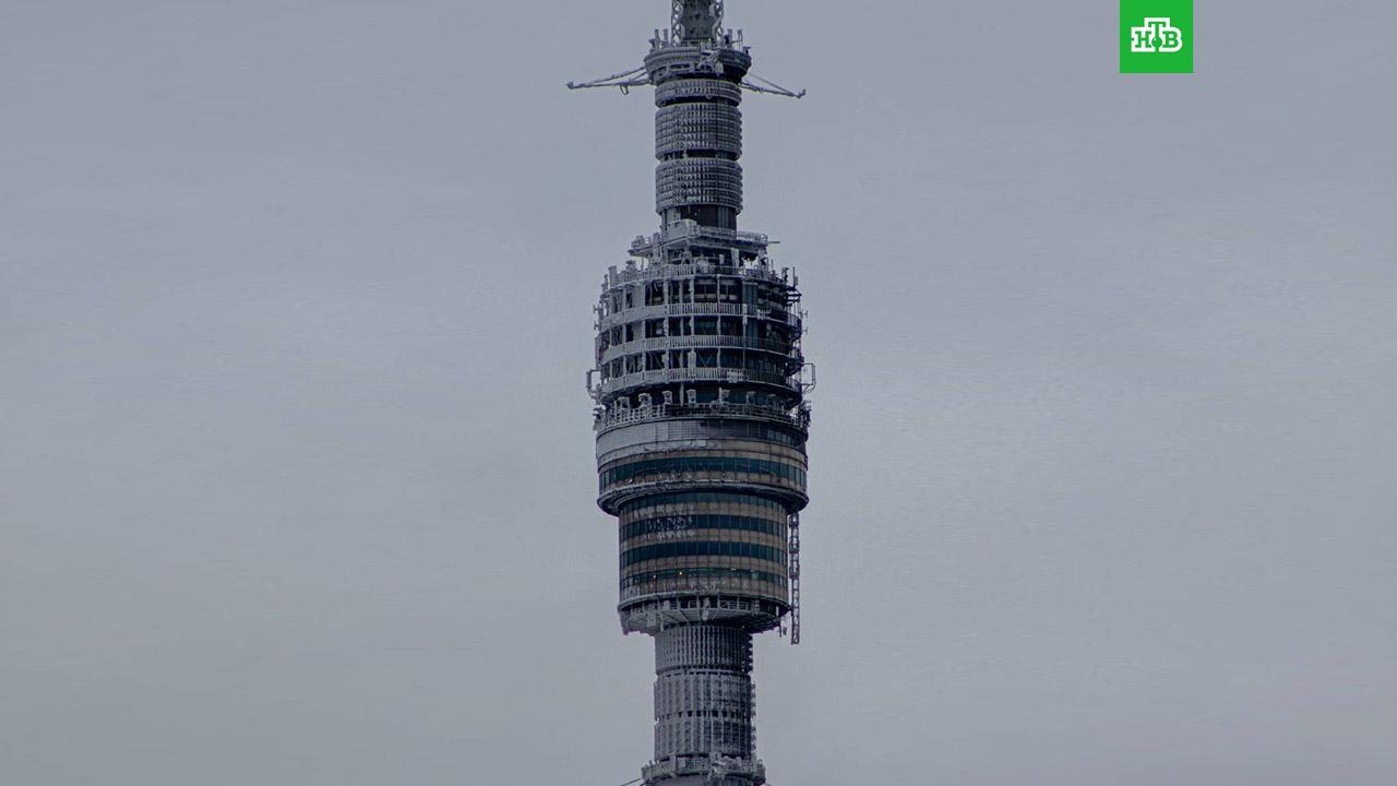 На размещенных фотографиях видно, что Останкинская башня покрылась коркой льда.