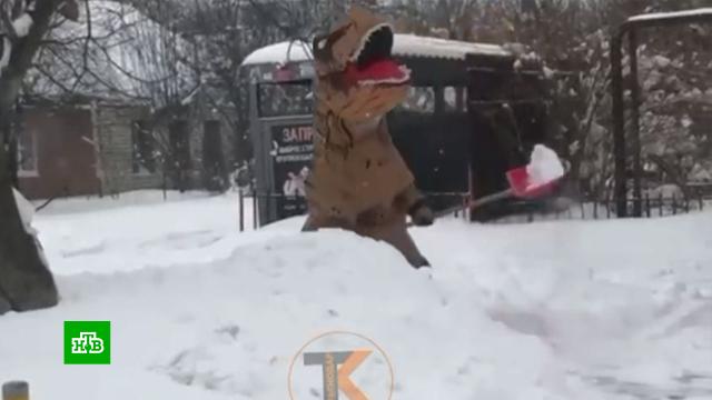 Синоптики предупреждают, что снегопад ожидается и в ближайшие двое суток, а столбик термометра может опуститься до минус 15 градусов. На помощь коммунальщикам выходят обычные горожане, у которых есть лопаты. В одном из районов снег расчищал человек в ростовом костюме динозавра.