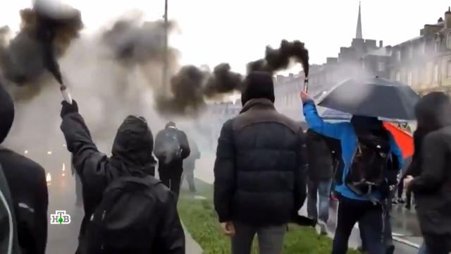 В Париже мирный митинг перерос в погромы и столкновения. В полицию летели бутылки и дымовые шашки, полиция отвечала водометами. Во Франции действует комендантский час, не работают кафе, рестораны, кинозалы и театры, закрыты границы.
